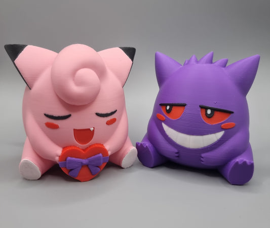 Gengar & Clefairy Couples His and Hers 3D Printed Pokemon Love Heart Valentines Anniversary Gift