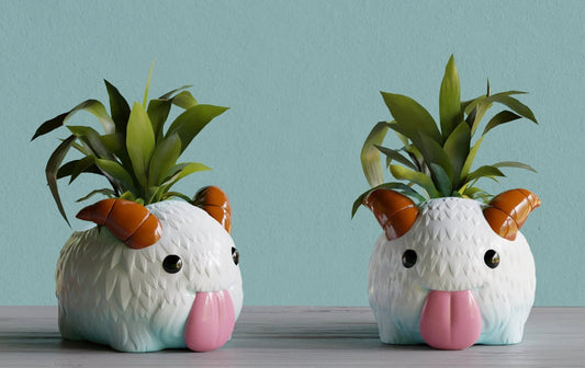 Poro Plant Pot Arcane League of Legends Flower Succulent Planters 3D Printed Pen Holder Desk Tidy - with or without moustache